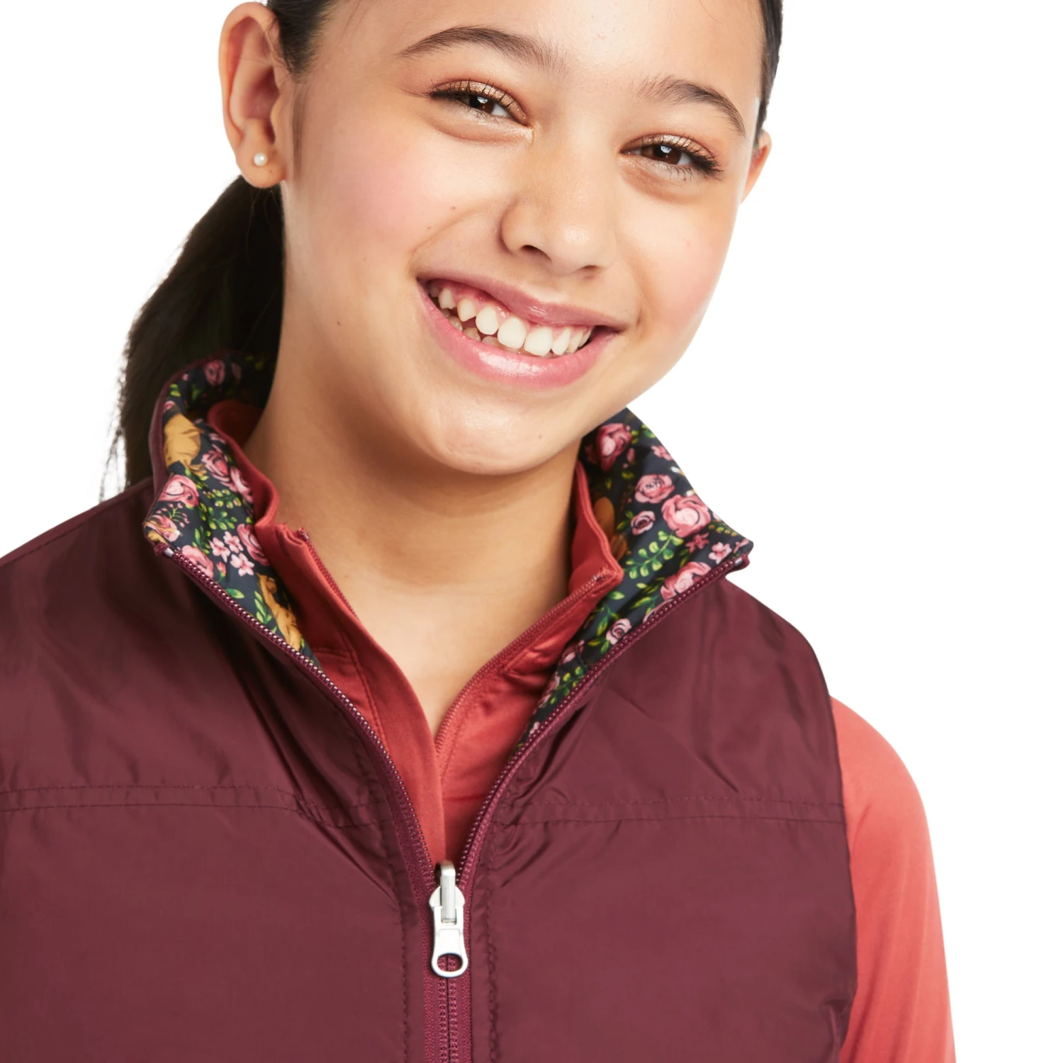 Ariat Girls Emma Reversible Navy Floral Horse Insulated Vest 10037631